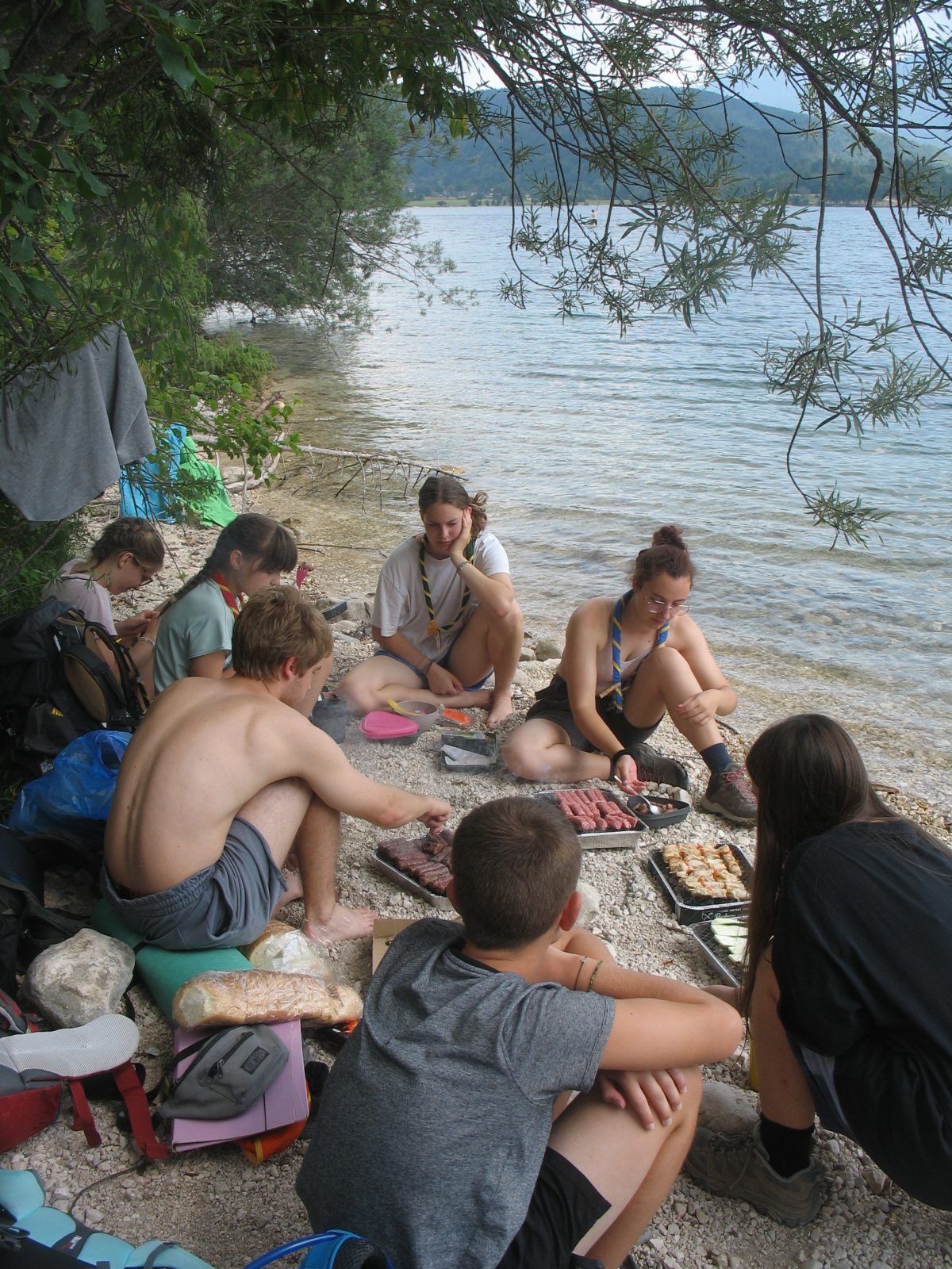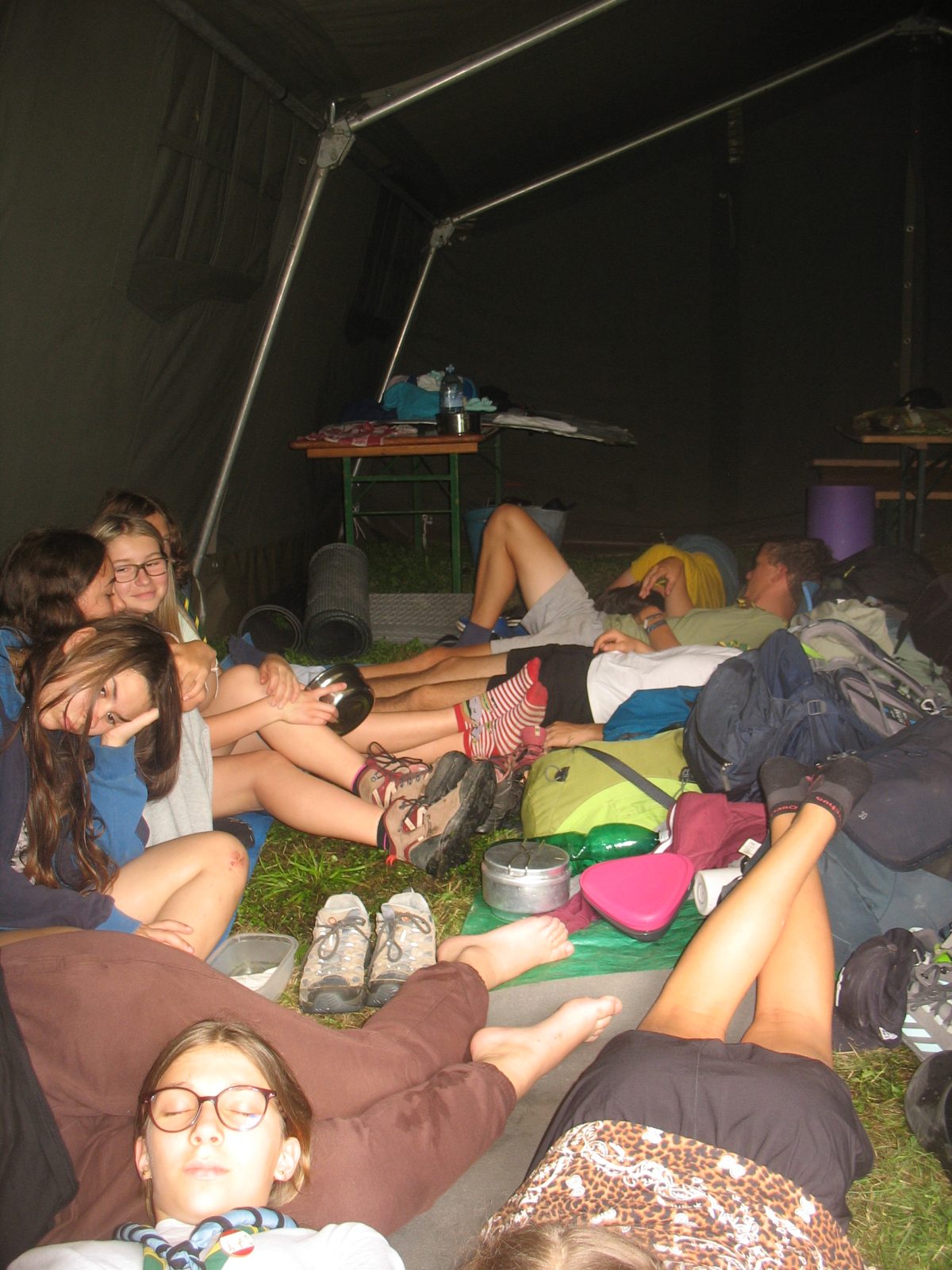 Ideja prehojenih kilometrov, ki bi jih naredili v objemu čudovite gorenjske narave se je po prvem prihodu v Bohinjsko Bistrico počasi začela razblinjati. Avtobus, ki bi nas moral zapeljati do Ukanca je zamujal skoraj eno uro, nakupljeno meso pa sami veste, ne obožuje visokih temperatur julijskih dni. Zato je bila prva sprememba v našem načrtu spustiti dvig do slapa Savice in namesto tega pohiteti do plaže ob Bohinjskem jezeru, kjer bi pojedli kosilo. Pri kosilu smo se naučili pomembne lekcije. Kuhanje kosila za 25 ljudi na prenosnih žarih ni najbolj zanesljiva opcija. H sreči smo s sabo spakirali tudi prenosne gorilnike, ki so poskrbeli da se je meso do konca pokuhalo. Med kuhanjem smo začeli na nebu opažati nevihtne oblake. Tudi ARSO in Triglav vreme nista bila preveč optimistična glede vremenske situacije v Bohinju. Velika odločitev je tako padla okoli 16h, ko smo se odločili da se zaradi oranžnega alarma razklicanega za severo-zahodno Slovenijo odmaknemo nazaj v tabor in prevedrimo noč. Zaradi velikosti skupine smo na avtobus od Bohinja do Bleda čakali približno uro in pol. V tem času so mimo postaje odpeljali trije avtobusi polni potnikov, saj so se iz lokacije odmikali vsi turisti. Končno se je mimo pripeljal avtobus s kapaciteto zadostujočo 25 utrujenim tabornikom in nas zapeljal do Mlina pri Bledu od koder smo s palerinami pešačili še približno 45 minut do našega tabora. Pojedli smo večerjo in noč prespali v grajeni jedilnici.