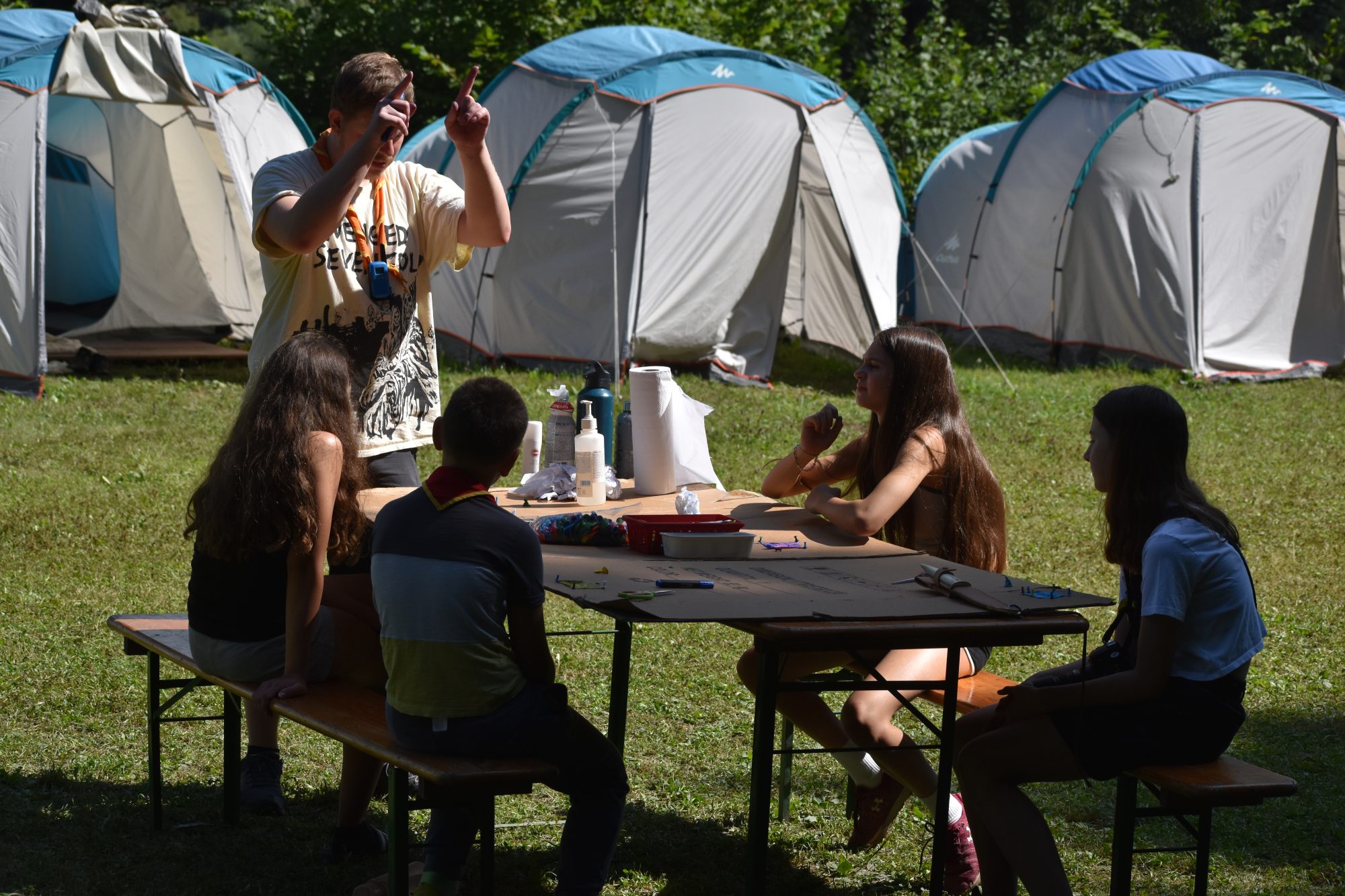 GG–ji so drugi dan začeli delavno –  zjutraj so vadili topografijo in osvajali teorijo. Dopoldne so z Živo začeli načrtovati svoj pionirski objekt, pri čemer so pokazali veliko ustvarjalnosti in načrtovanja. Po kosilu so skupaj s Tomijem in Evo risali skice terena različnih delov tabornega prostora. Zvečer smo se zbrali ob ognju, kjer smo igrali zabavno igro »Moj vodnik zmore«. Po aktivnem in polnem dnevu so GG–ji brez težav potonili v spanec.