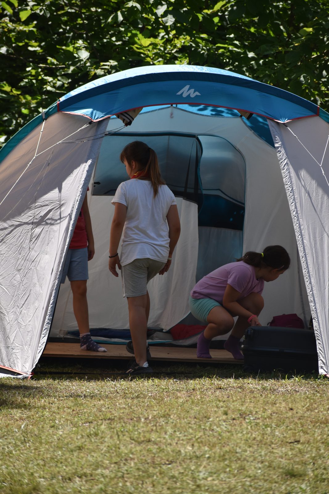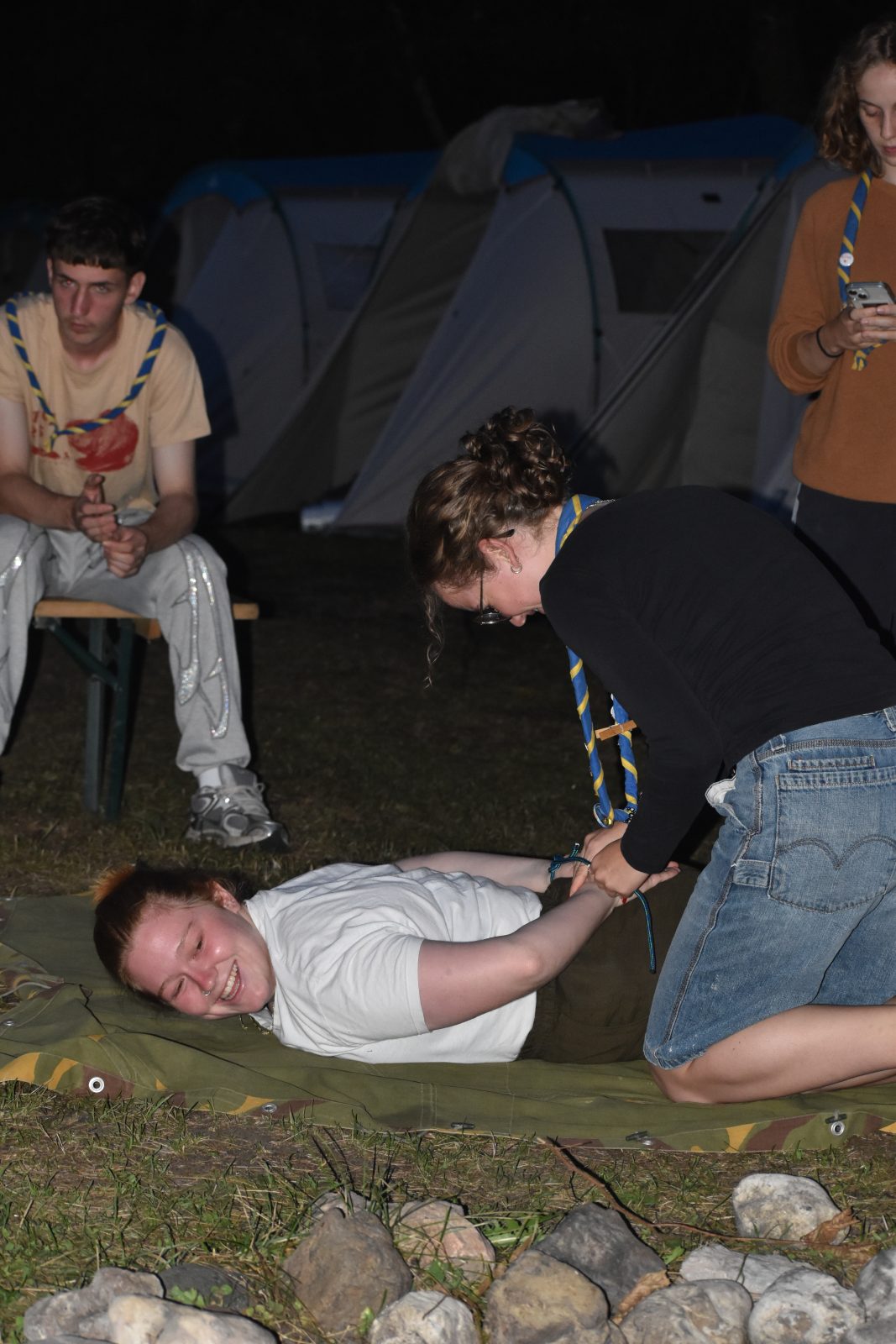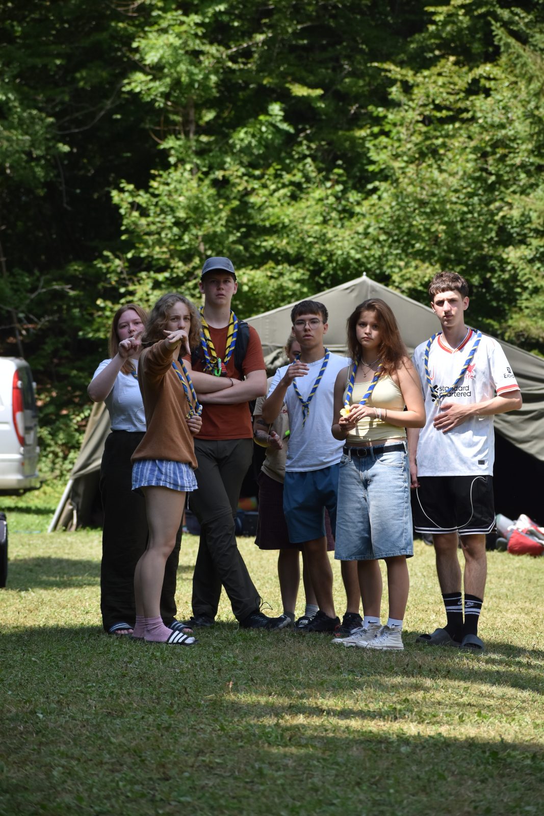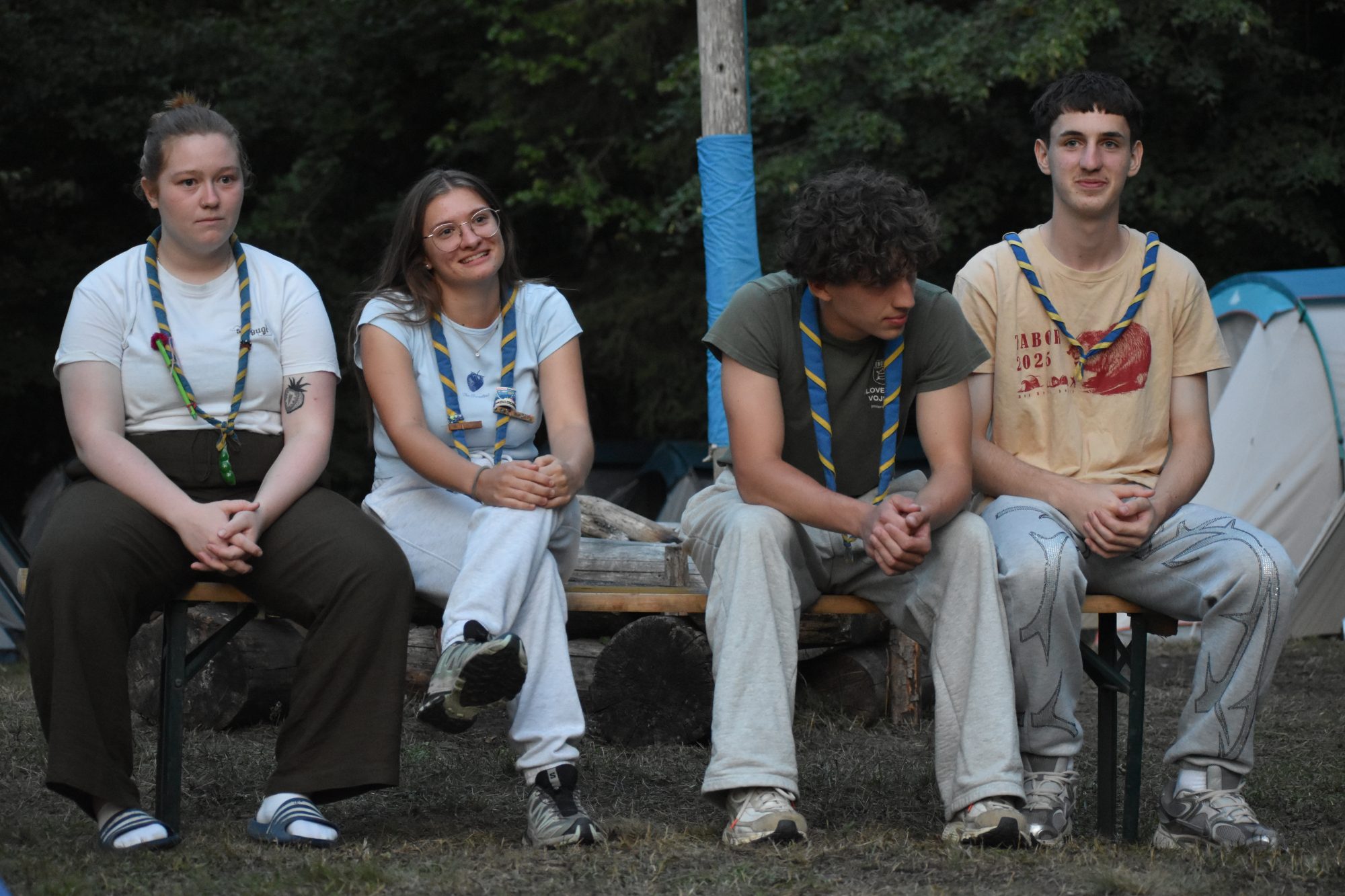 Prvi dan tabora smo začeli z razpakiravanjem in nameščanjem v šotore ter spoznavanjem pravil, za kar sta poskrbeli Frida in Alja. Popoldne smo se z Gabrom podali na spoznavne igre in raziskali tabor. Sledile so zabavne vodne igre, ki so nas prijetno ohladile v vročem dnevu. Pred večerjo smo se zbrali na pevskih uricah z Zarjo, zvečer pa zaključili dan z igro »Moj vodnik zmore«, kjer so se vodniki preizkusili v zabavnih izzivih. Za nami je uspešen in vesel prvi dan tabora.